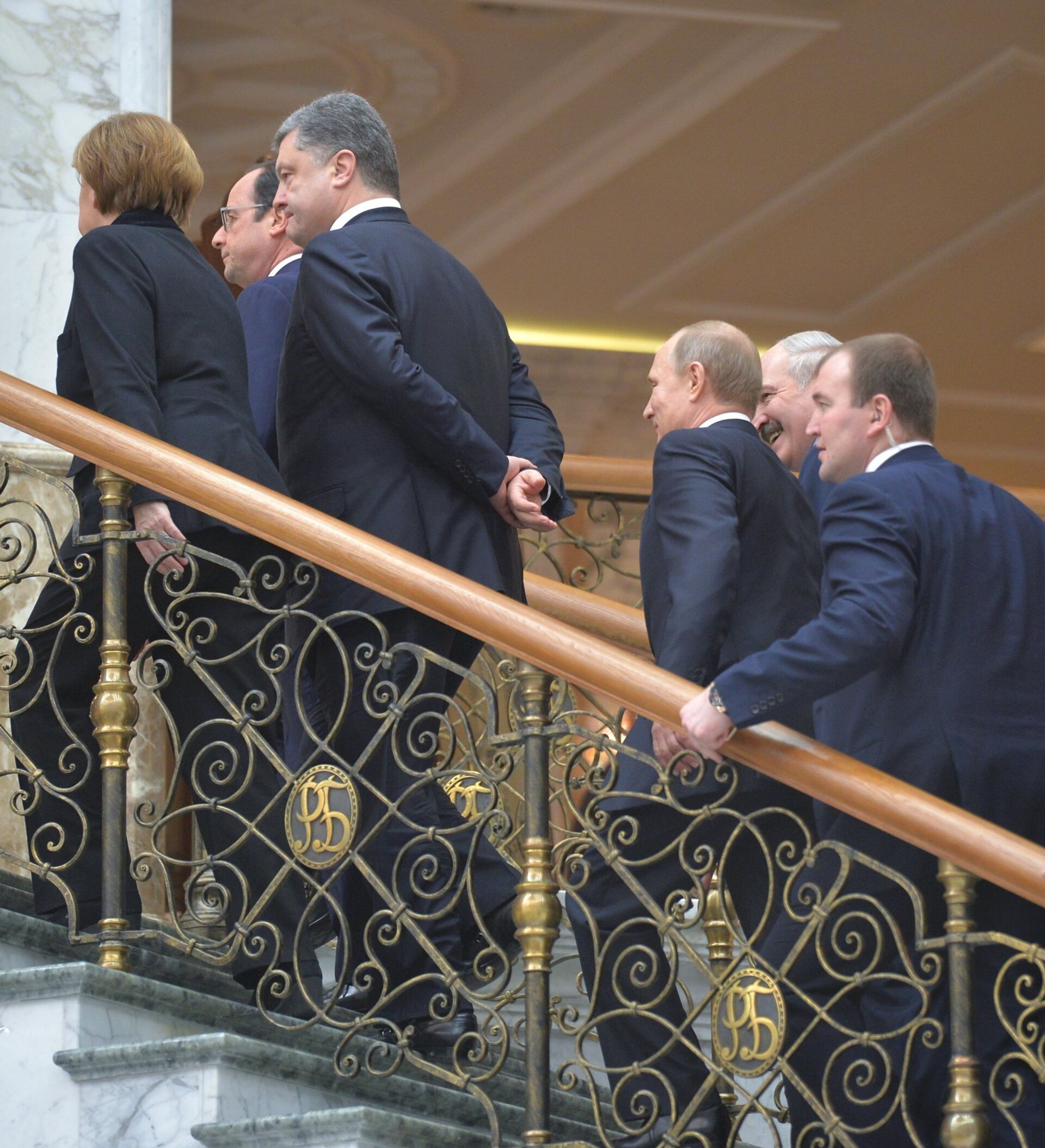會談一直未對外界開放,四國領導人只是時而離開大廳,但幾分鐘後又返回。他們啓動會談時沒有代表團成員的參與,但隨後根據需要曾邀請他們參與討論。