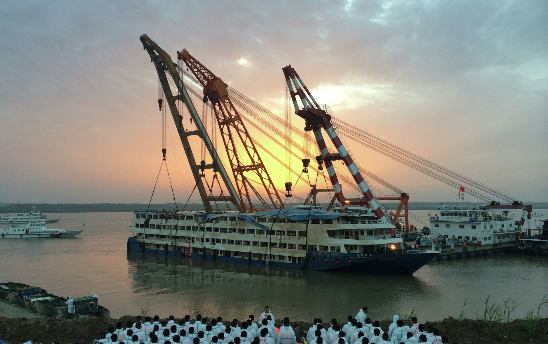 “東方之星”游輪於北京時間6月1日晚上21時28分在湖北省境內的長江水域翻沈。該游輪從南京出發駛往重慶。據媒體報道,船上有405名乘客,均為中國公民,此外還有46名船員以及5名旅行社工作人員。船長以及輪機長稱船隻出事前遇到了龍捲風。船長以及輪機長已經被扣押,並將對其進行詢問。沈船位置的河流深度為15米。幸存者講述,客輪在不到一分鐘之內沈沒。大部分人都沒能來及穿戴救生用具。