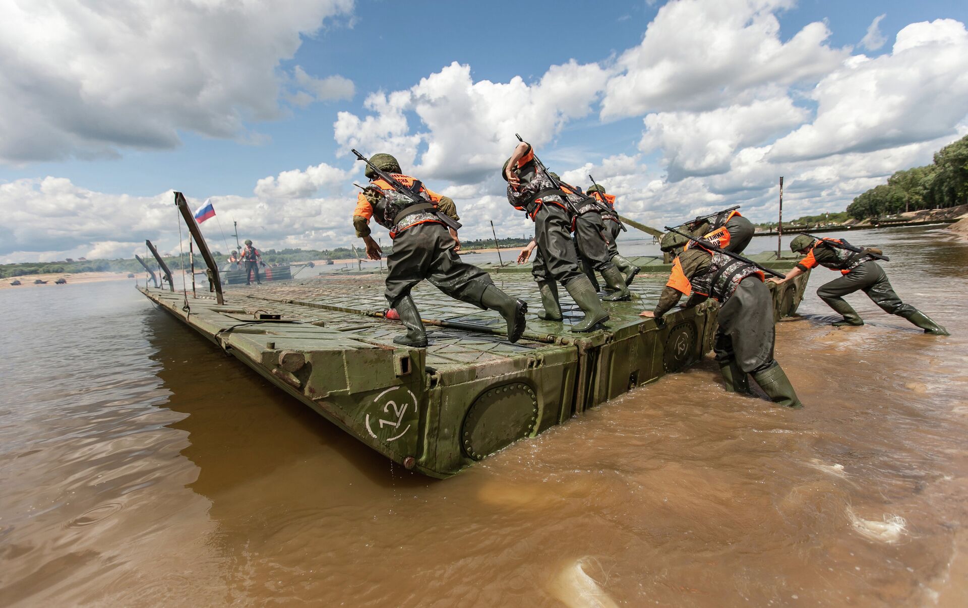 8月8日將揭曉“公開水域”比賽中的最佳浮橋架設隊。俄羅斯、白俄羅斯和中國軍人參加本次比賽。
