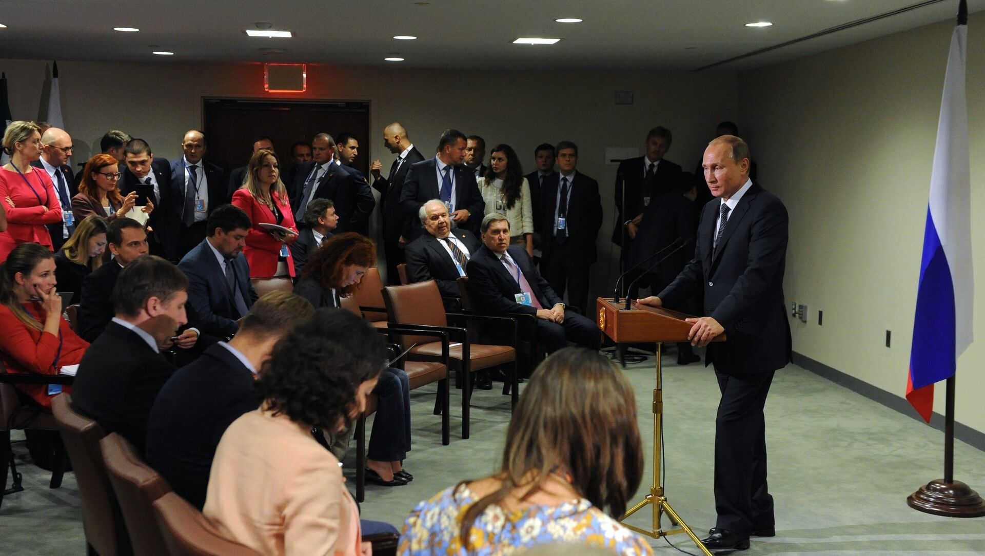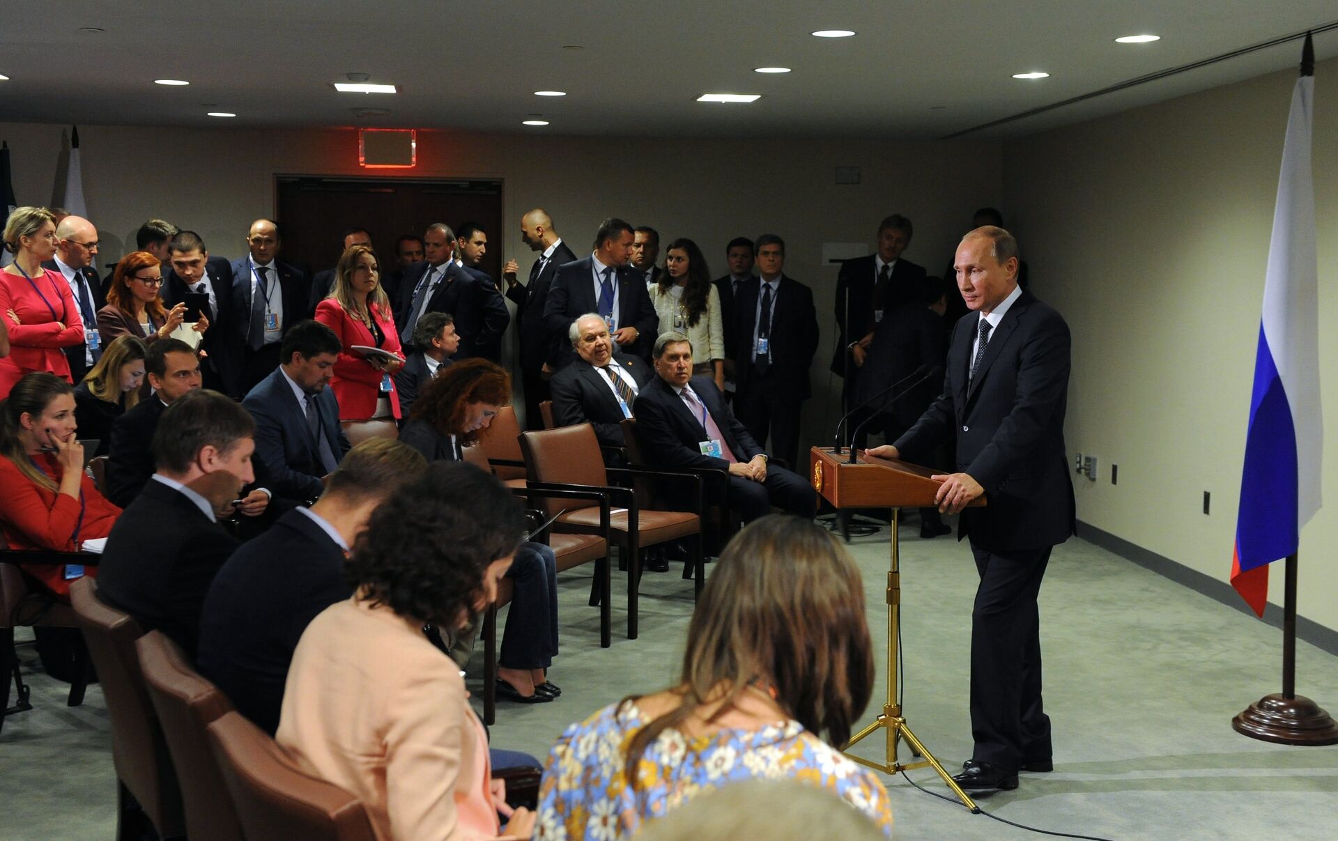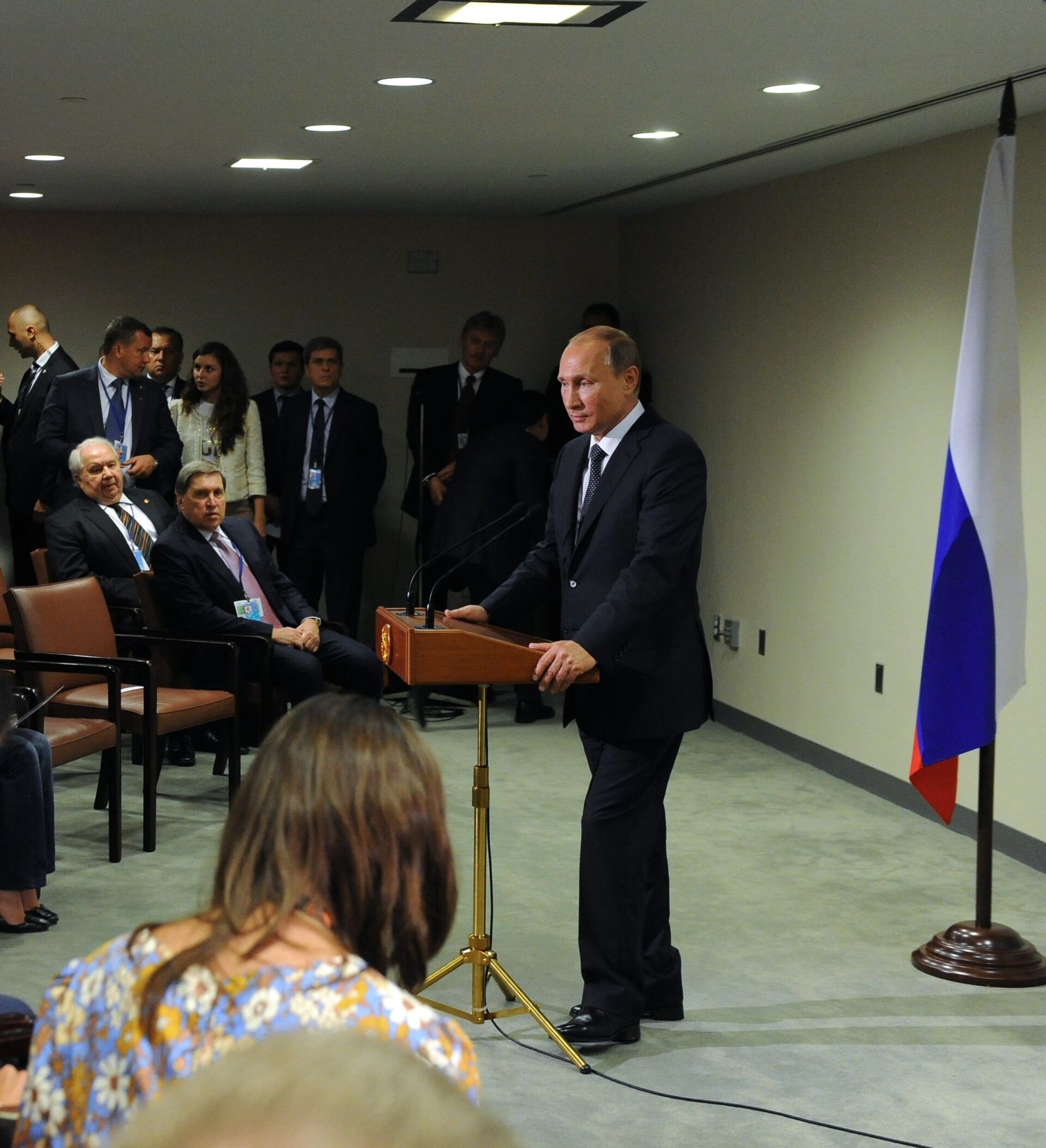 普京說:“我們認為,打擊恐怖主義的工作應當與敘利亞國內的政治進程同時進行,但並不是說俄羅斯軍隊參與地面戰場,也不可能有這種情況”。