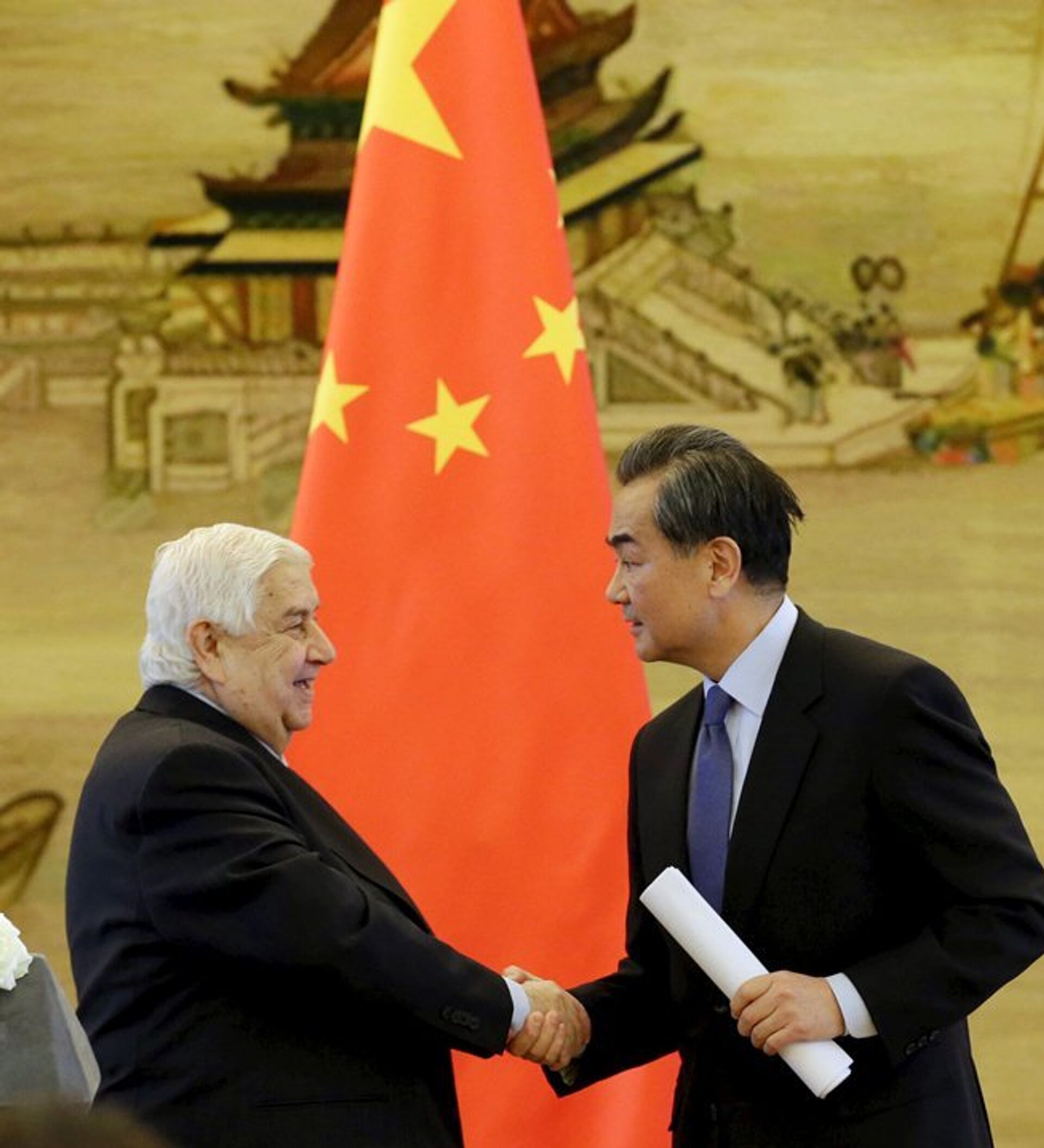 陸慷表示,應王毅外長邀請,敘利亞副總理兼外長穆阿利姆對中國進行了重要訪問。訪問期間,中國國務委員楊潔篪會見了他。王毅外長同他就敘利亞問題解決進程進行了深入探討。