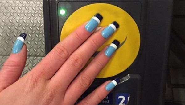 據英國《標準晚報》報道,現居倫敦的女大學生露西·戴維斯學會刷指甲乘坐公共交通工具。她認為,她的這項發明很快就會流行起來。 2016年7月19日, 俄羅斯衛星通訊社