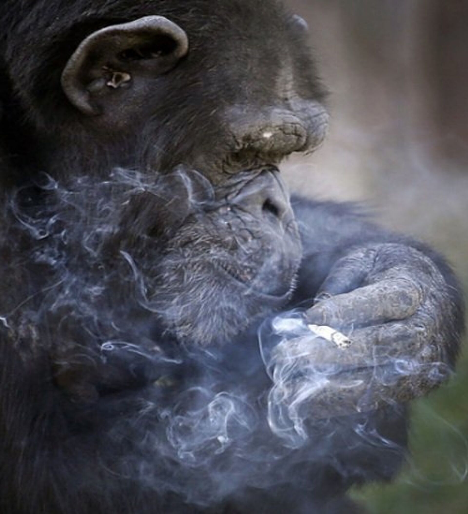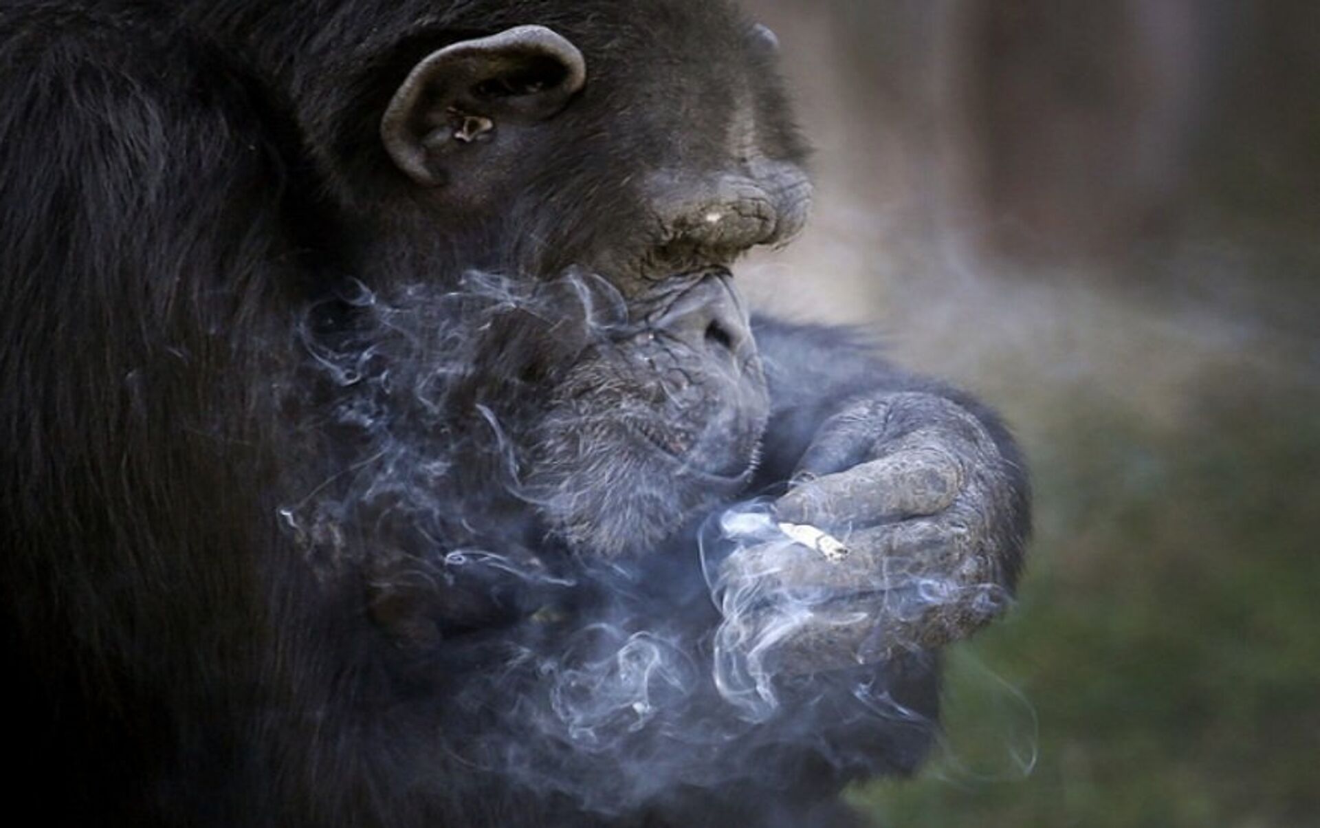 動物園抽煙大猩猩網絡爆紅 老煙槍動作銷魂