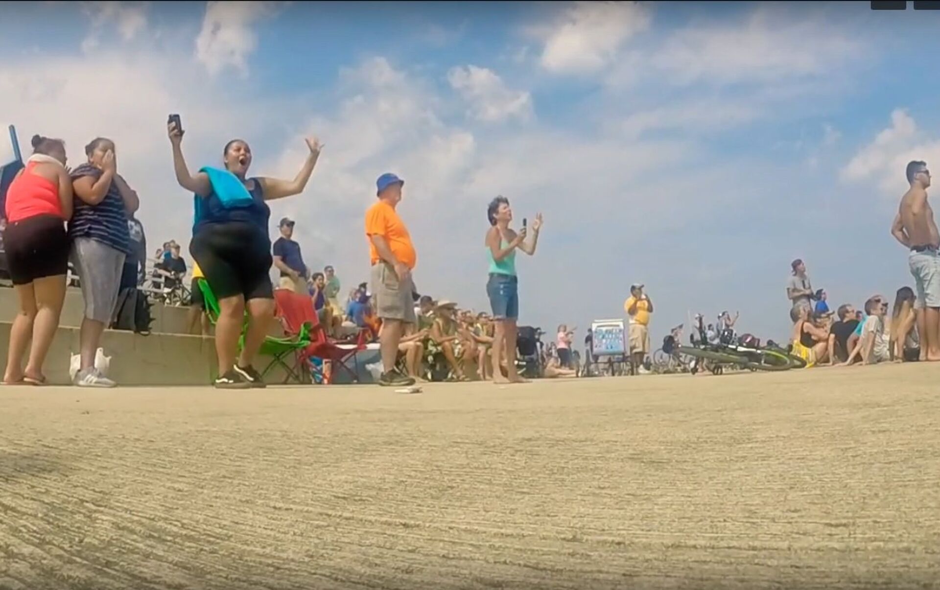起初觀眾們受到了驚嚇,之後熱烈歡呼並為飛行員鼓起掌來。