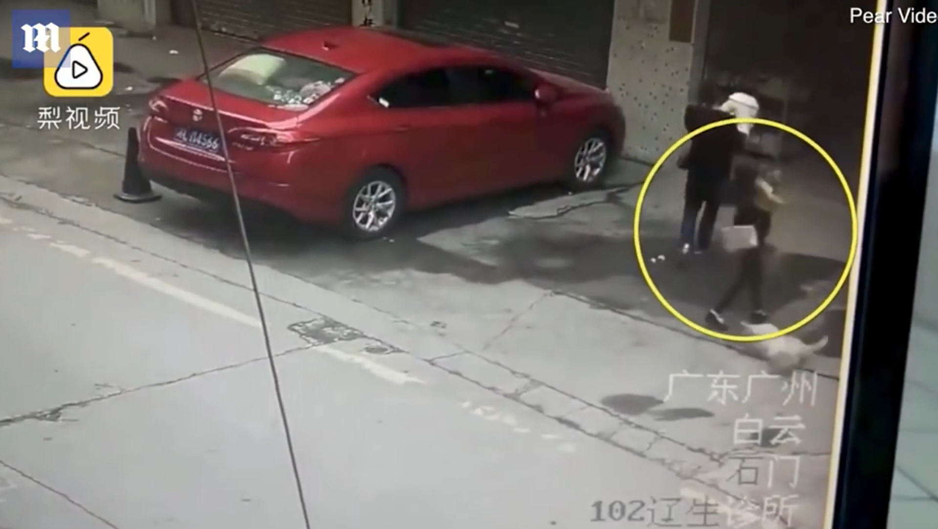2018年4月24日, 19:46 (更新: 2022年1月26日, 00:54) 據英國《每日郵報》報道,廣州一名女子在進樓門前被從天而降的小狗砸中頭部和頸部,失去意識,小狗起身跑掉。這一幕被監控探頭拍下。