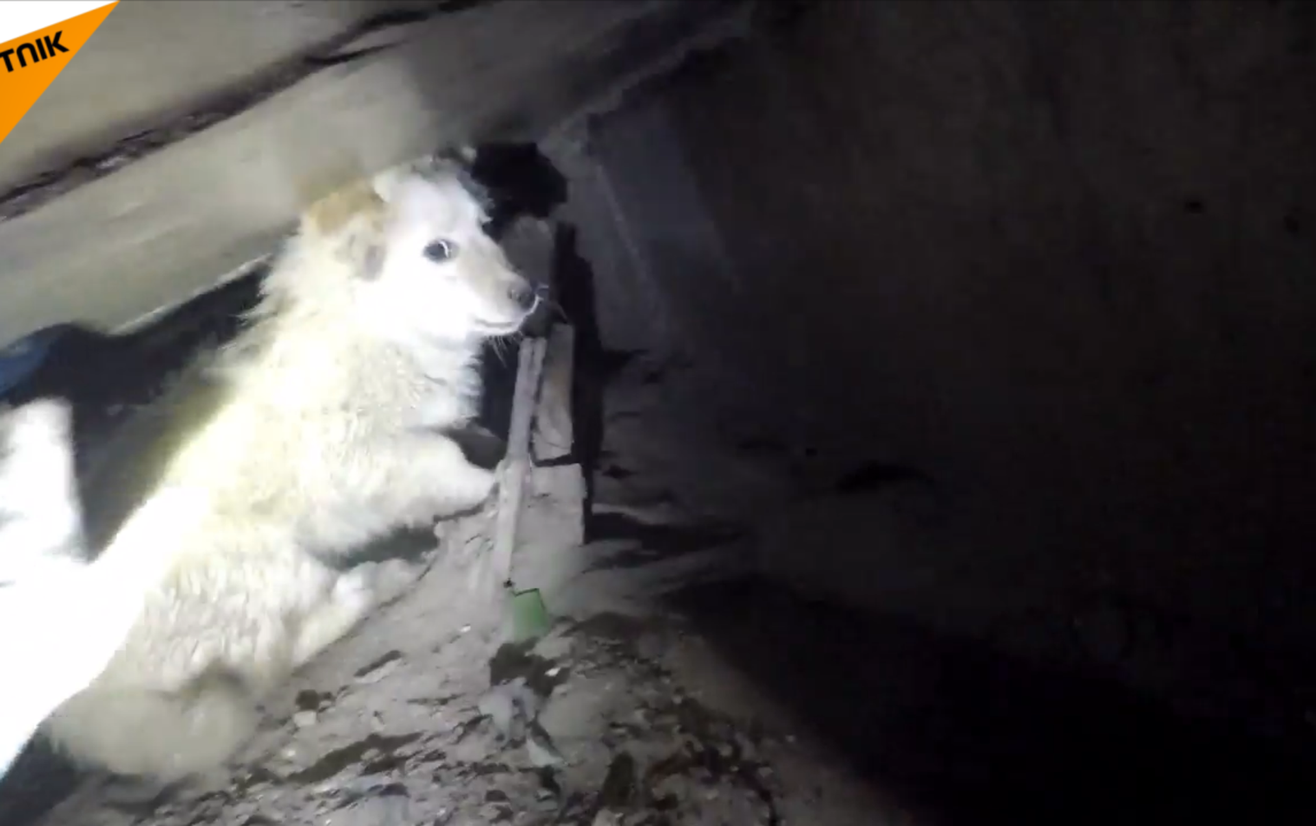 新西伯利亞斯克的地下掩蔽所專家救出一條在地溝裡待了三個月的小狗。 2018年7月5日, 俄羅斯衛星通訊社