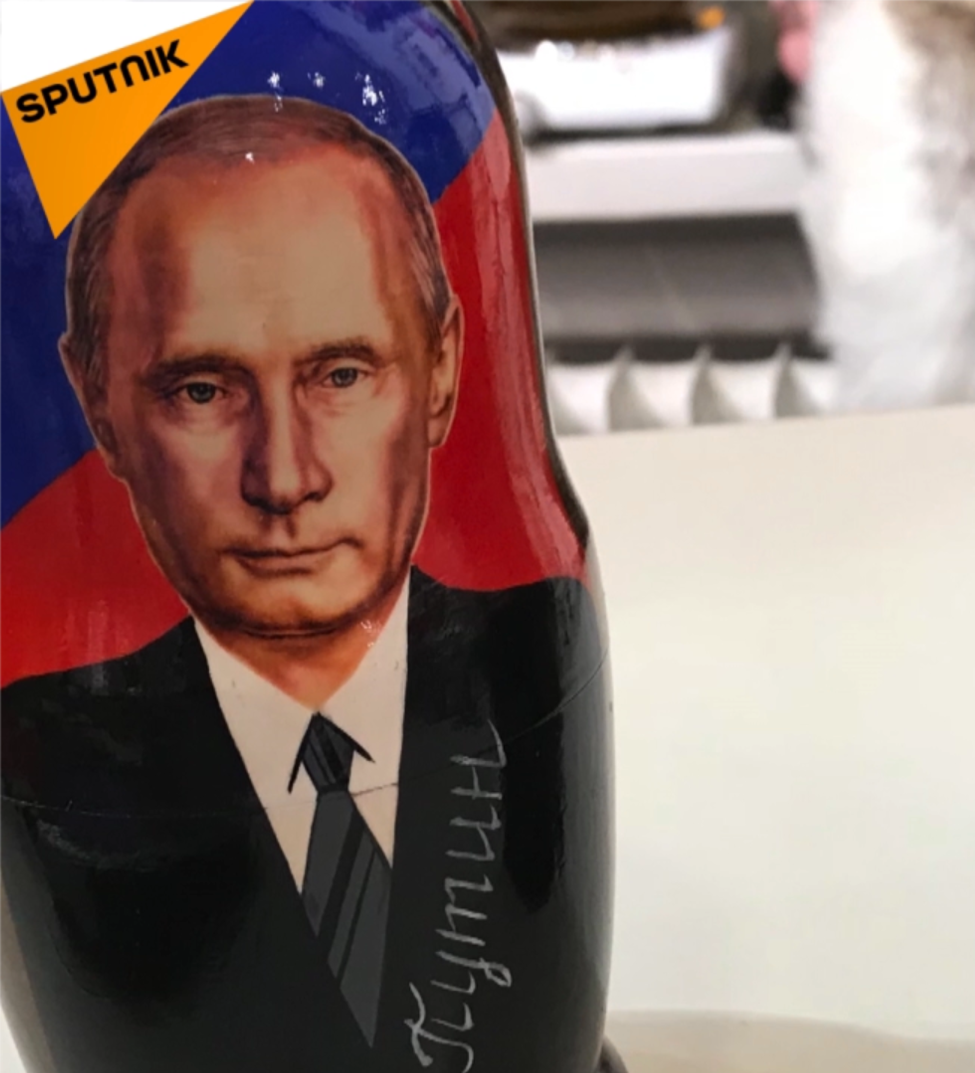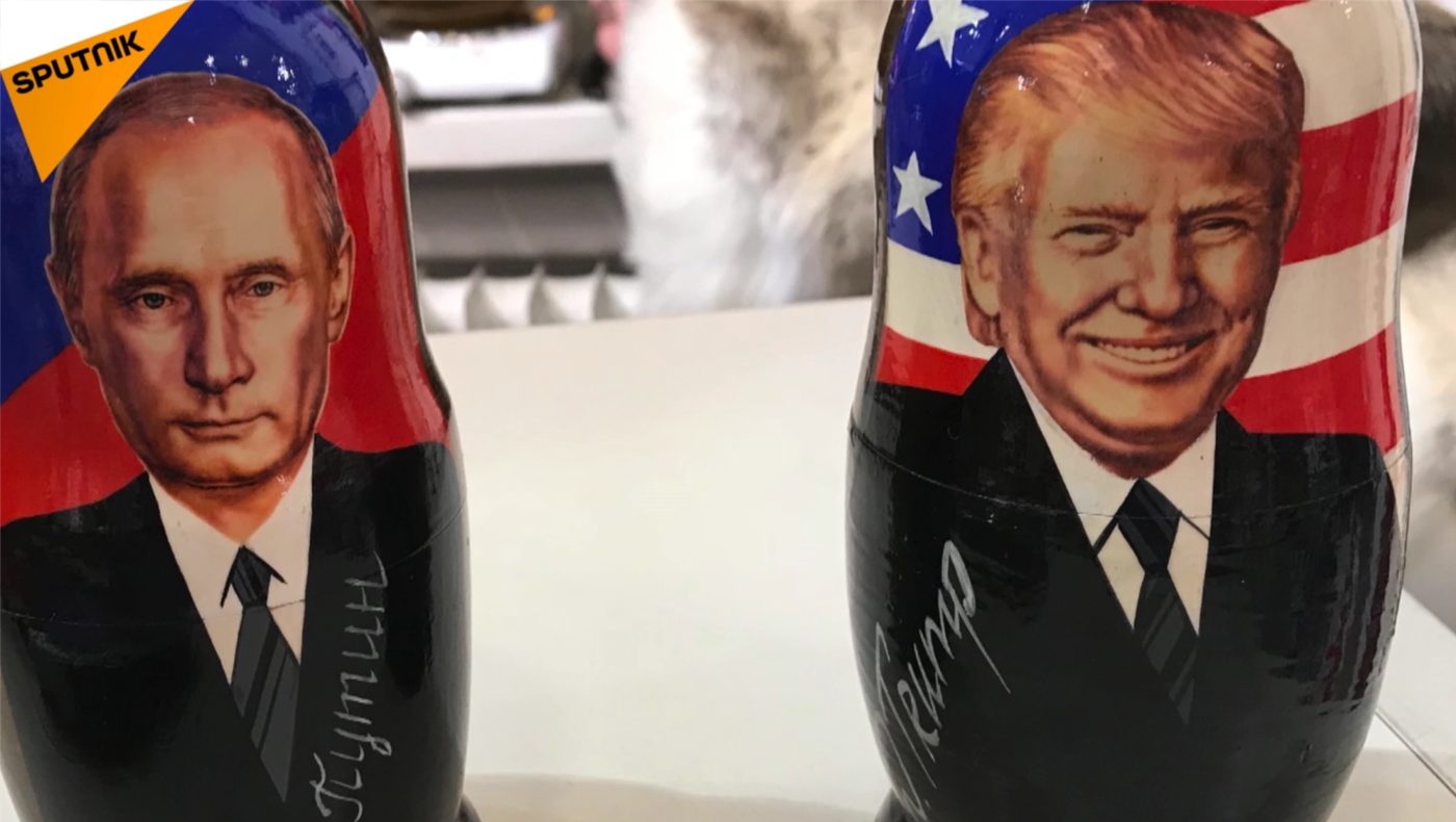 在芬蘭首都赫爾辛基的紀念品商店裡出現了印有普京和特朗普照片的套娃及其它紀念品——T裇衫和明信片。 2018年7月14日, 俄羅斯衛星通訊社