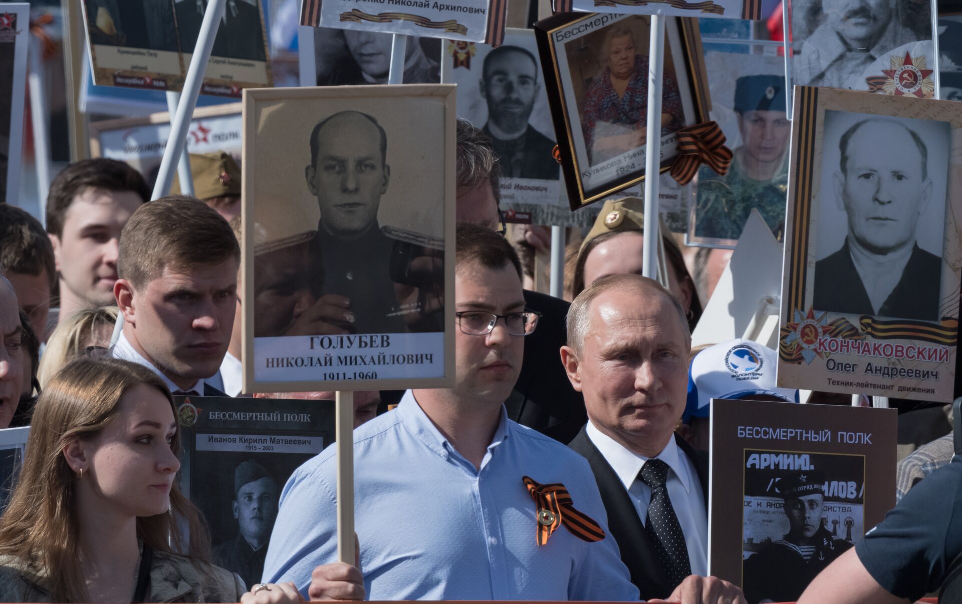近年來,普京經常參加"不朽軍團"遊行活動。俄羅斯及其他國家在5月9日勝利日當天舉行該活動。2012年5月9日,該遊行首次在俄羅斯托木斯克市舉辦,2013年"不朽軍團"成為全俄羅斯活動。人們攜帶參加過偉大衛國戰爭親人的照片遊行。