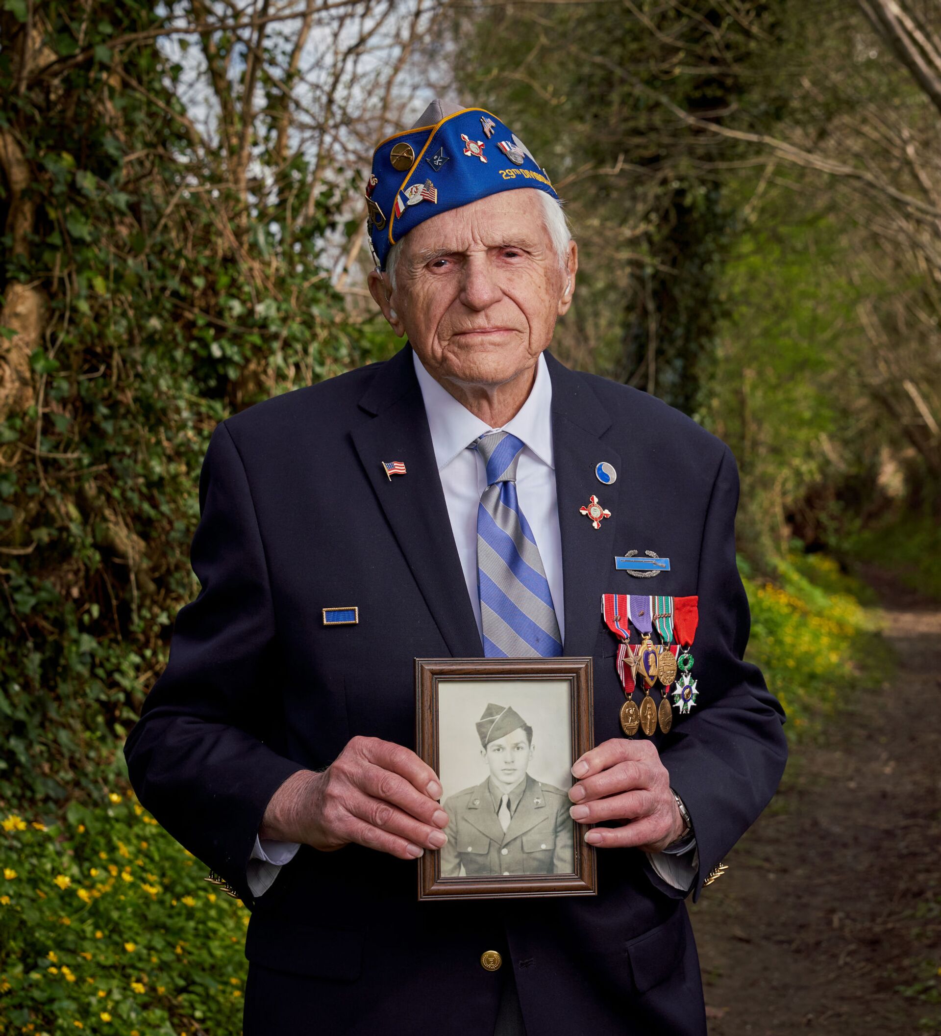 “我們團進攻聖洛市,在108高地,我們前進了2.5英里,在受阻滯前把城市拿下了。我收了傷,被送往英國。治癒後,我又加入此前的連隊。我們繼續戰鬥,解放了聖洛。然後繼續往東,向德國進攻。”