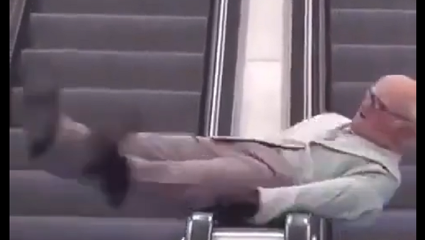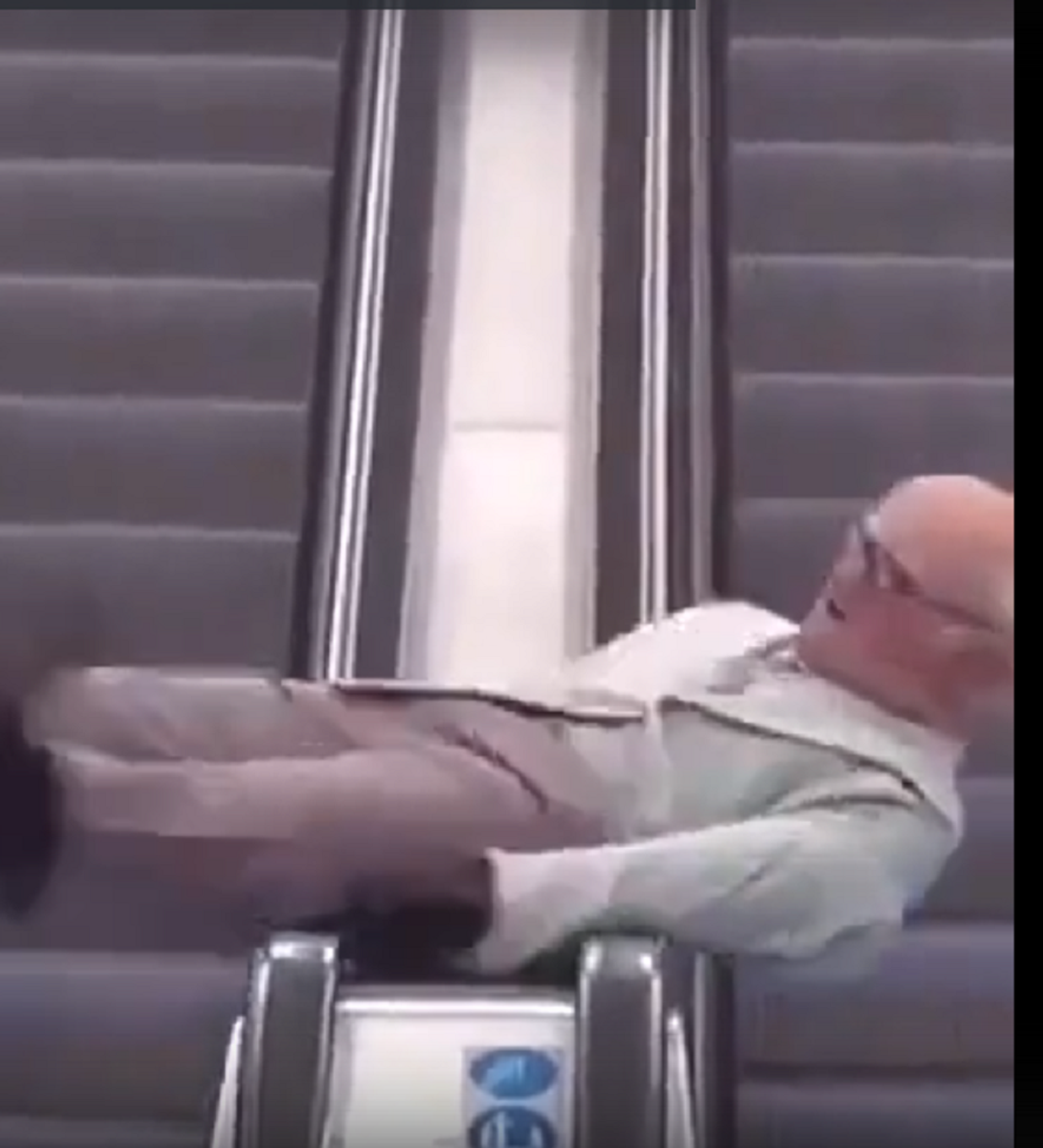 視頻中可以看到,一名退休年齡的男子爬上地鐵滾梯並在上面跳起雜技舞蹈。這讓地鐵乘客和工作人員困惑不解。