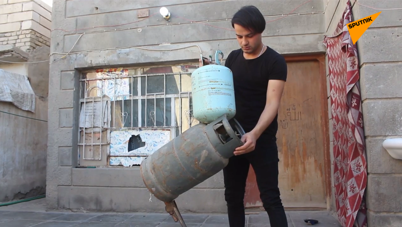 伊拉克一位居民在4年時間里打磨自己的重力平衡術,可以將物品疊在一起而不倒。 2020年4月13日, 俄羅斯衛星通訊社