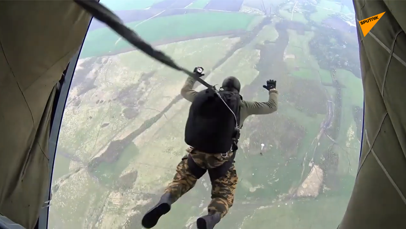 特種部隊在克拉斯諾達爾邊疆區進行冬季訓練。在檢查測試過程中,共完成超過1500次空降。 2020年4月22日, 俄羅斯衛星通訊社