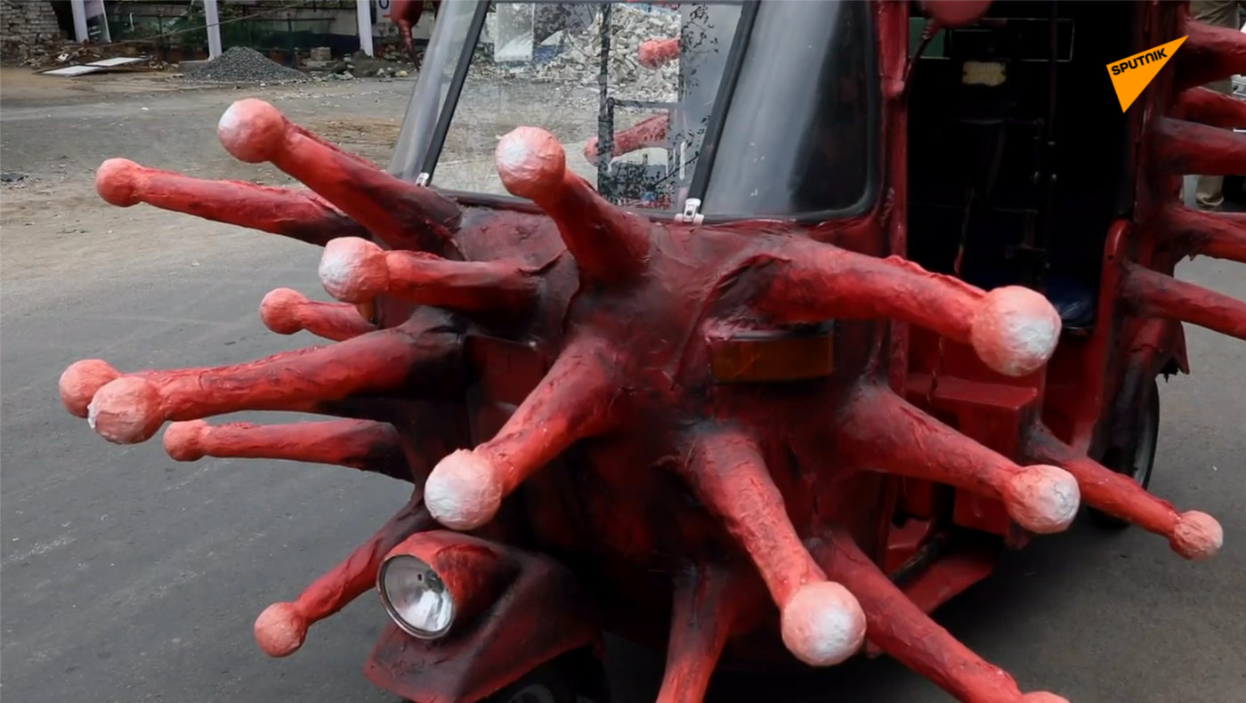 印度欽奈一名藝術家決定幫助當地政府抗疫。 2020年4月28日, 俄羅斯衛星通訊社