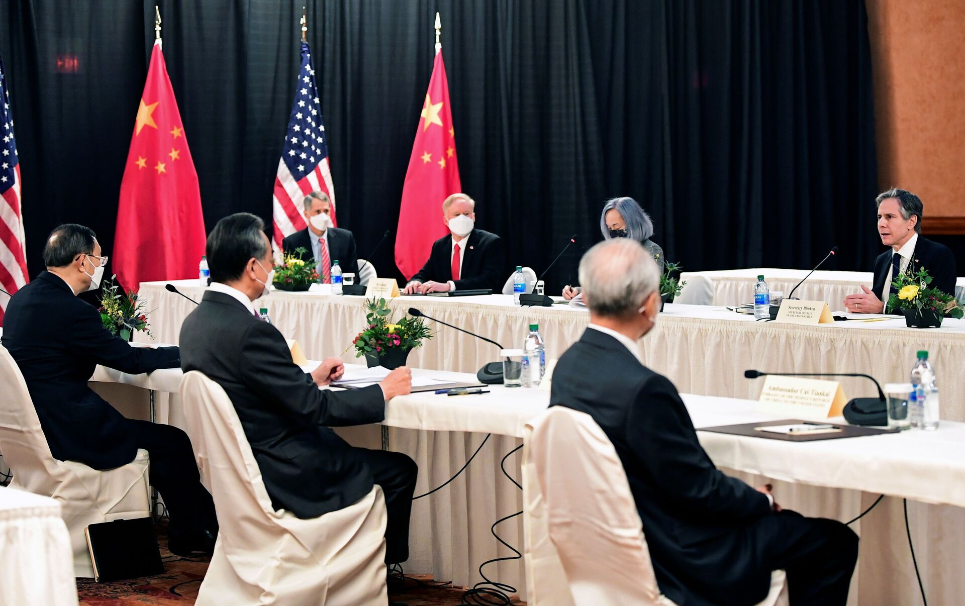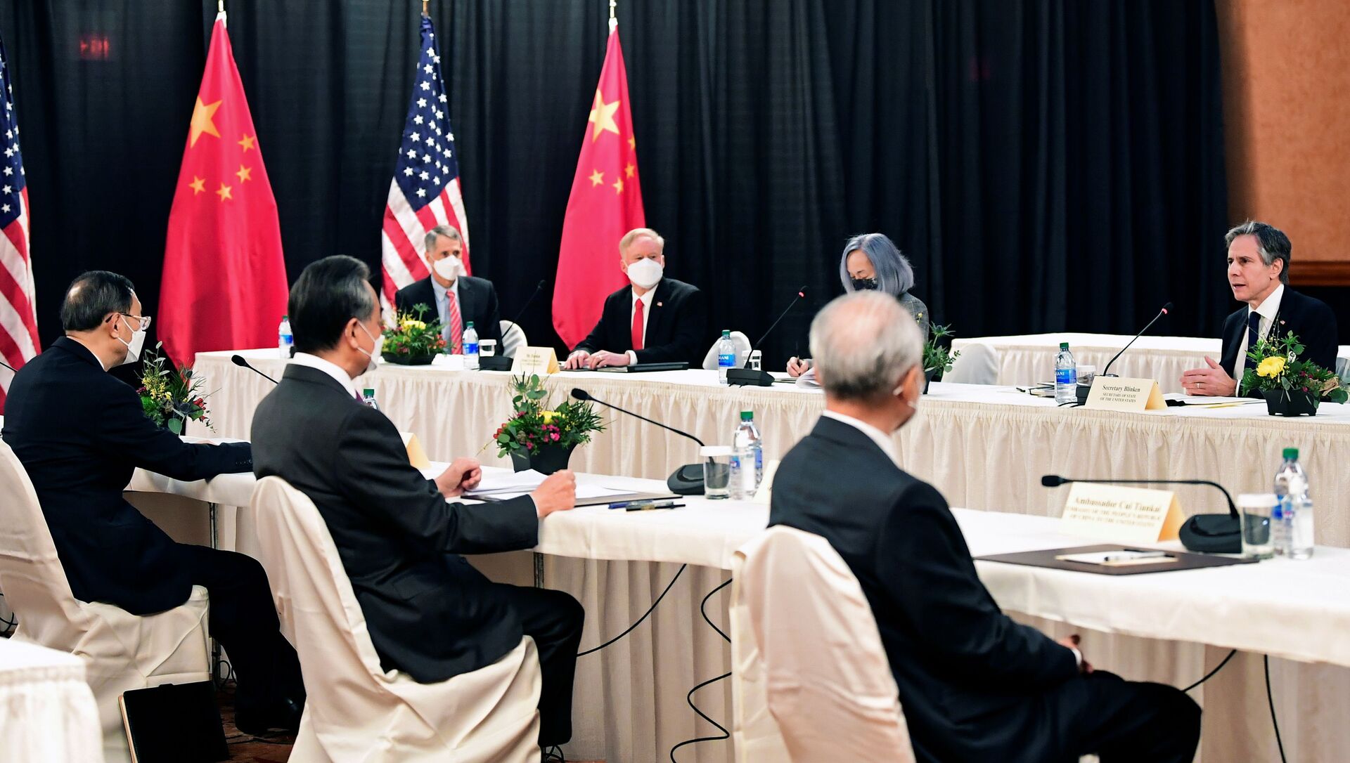 當地時間3月18日,中共中央政治局委員、中央外事工作委員會辦公室主任楊潔篪、國務委員兼外長王毅在阿拉斯加安克雷奇同美國國務卿布林肯、總統國家安全事務助理沙利文舉行中美高層戰略對話。