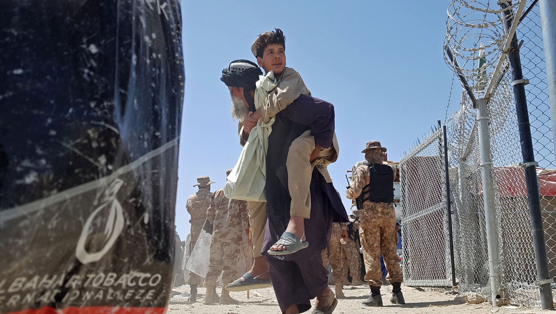 阿富汗塔利班奪得政權後,大量阿富汗人逃離家園。圖為阿富汗難民正在穿過巴基斯坦邊境。 - 俄羅斯衛星通訊社