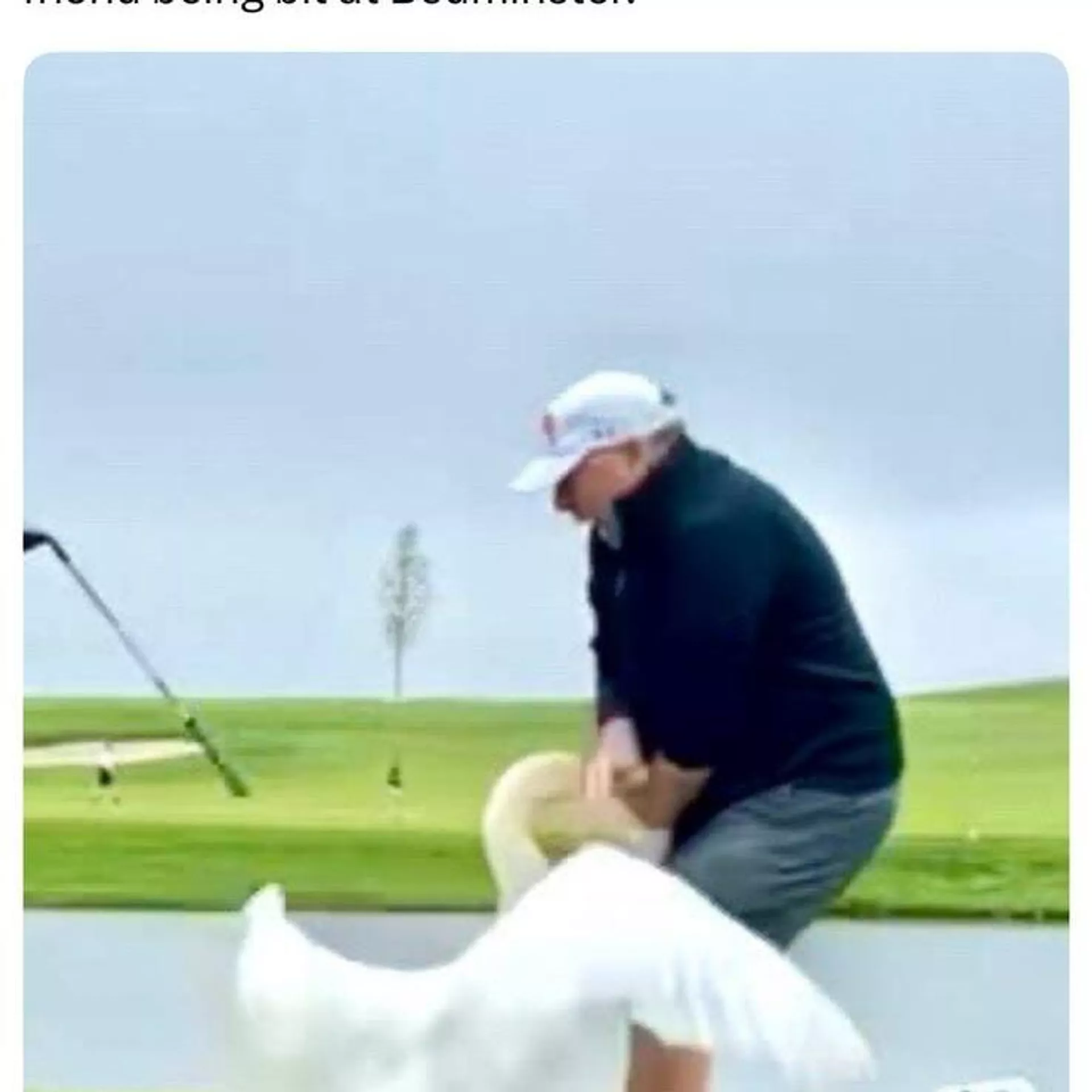 照片顯示,這只天鵝正啄咬這名男子的要害部位。特朗普稱受害者是其“朋友”,根據輪廓和身高,一些網友猜測這可能是中東問題特使史蒂夫·威特科夫。