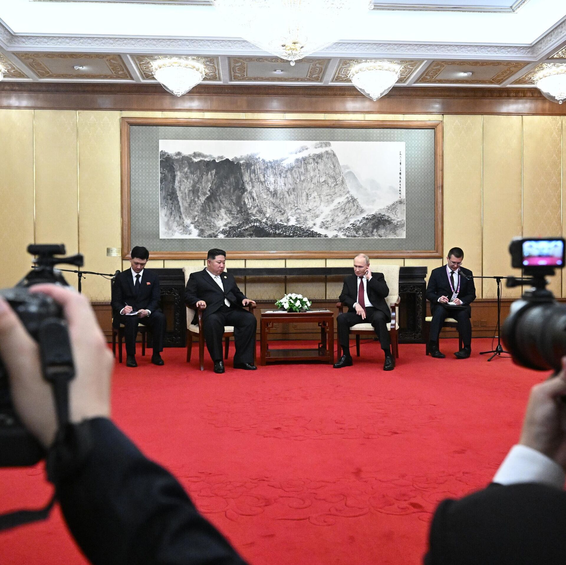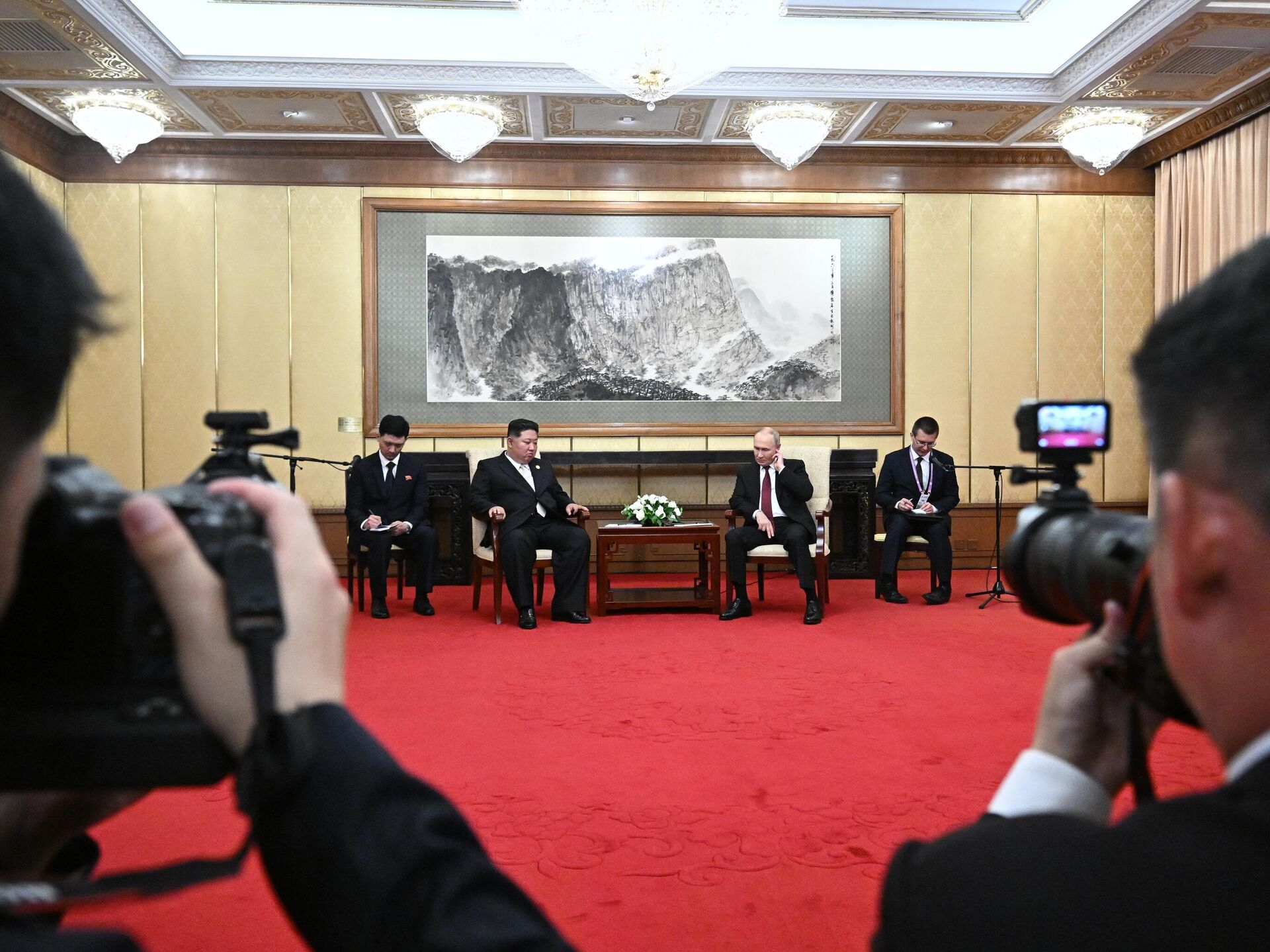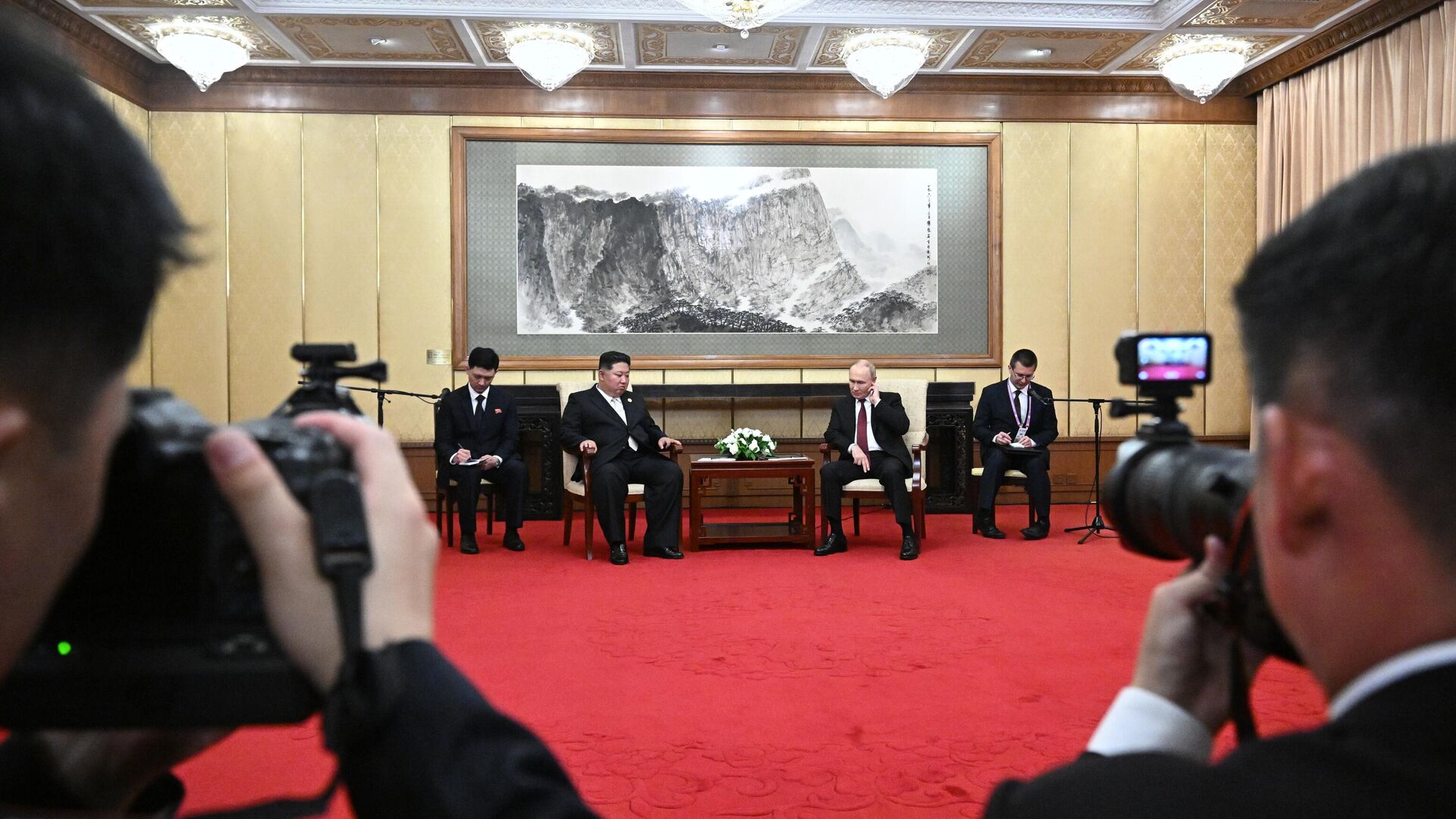 9月3日早些時候,普京同金正恩在北京舉行了有代表團參加的雙邊會談,會議持續超過1個半小時。此後,俄朝兩國領導人繼續進行了一對一交流。