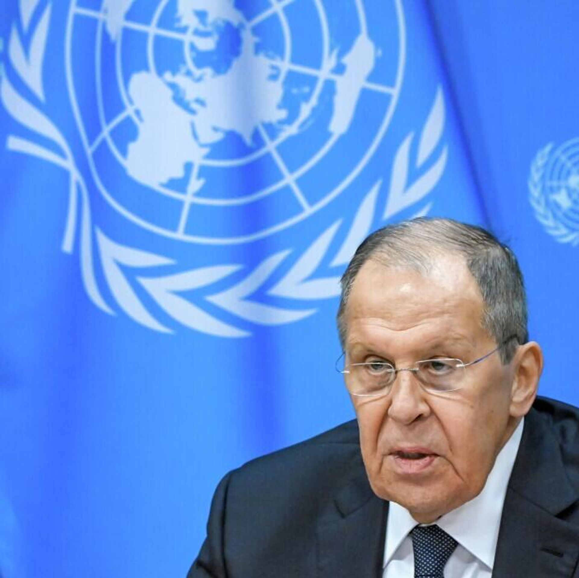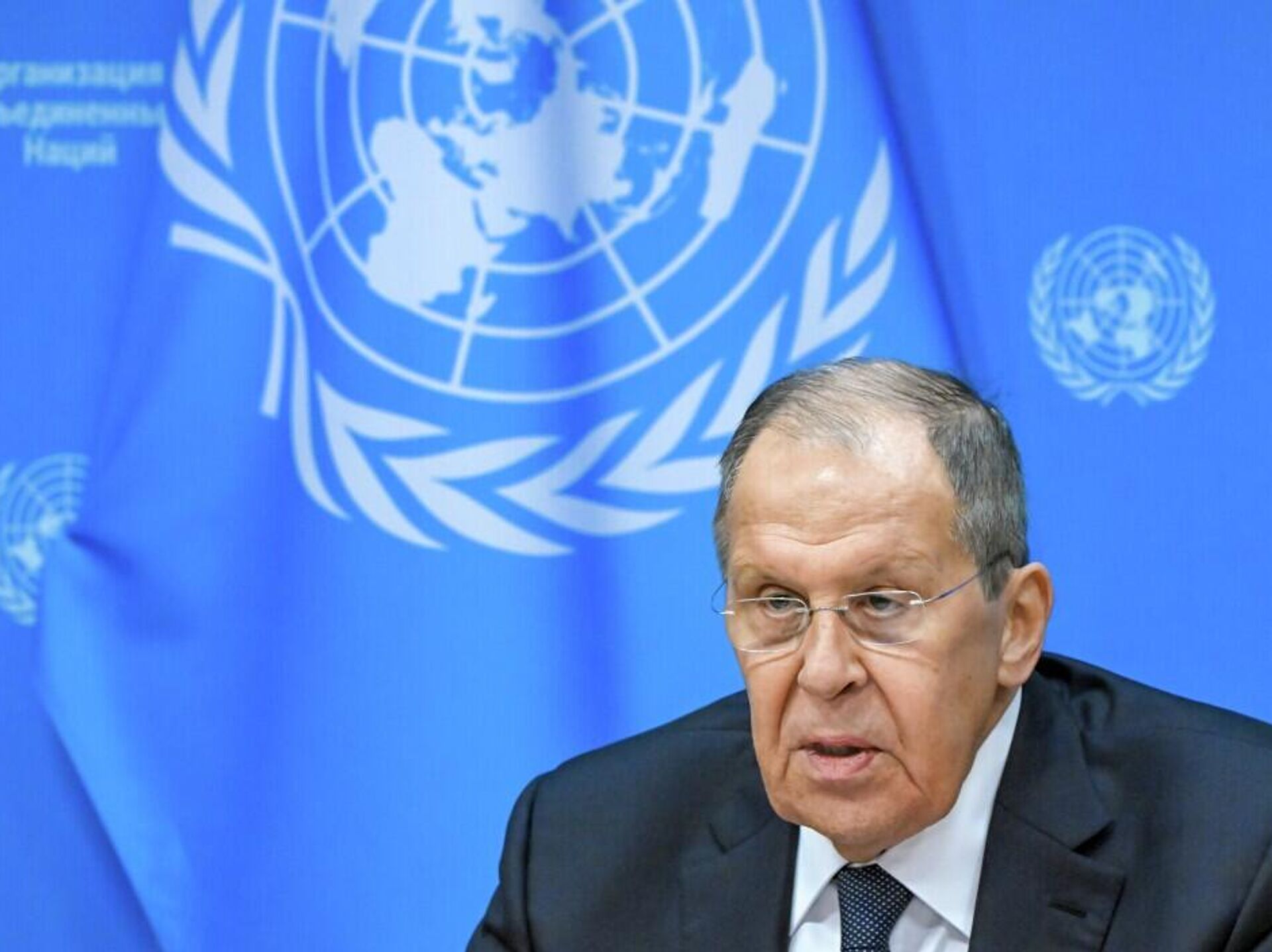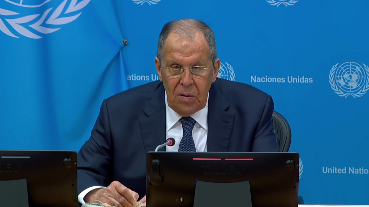 俄羅斯外交部長謝爾蓋·拉夫羅夫在聯合國大會第八十屆會議高級別周結束後舉行記者會,就俄美關於烏克蘭問題的對話及北約國家指責莫斯科侵犯領空一事作出回應。 2025年9月28日, 俄羅斯衛星通訊社