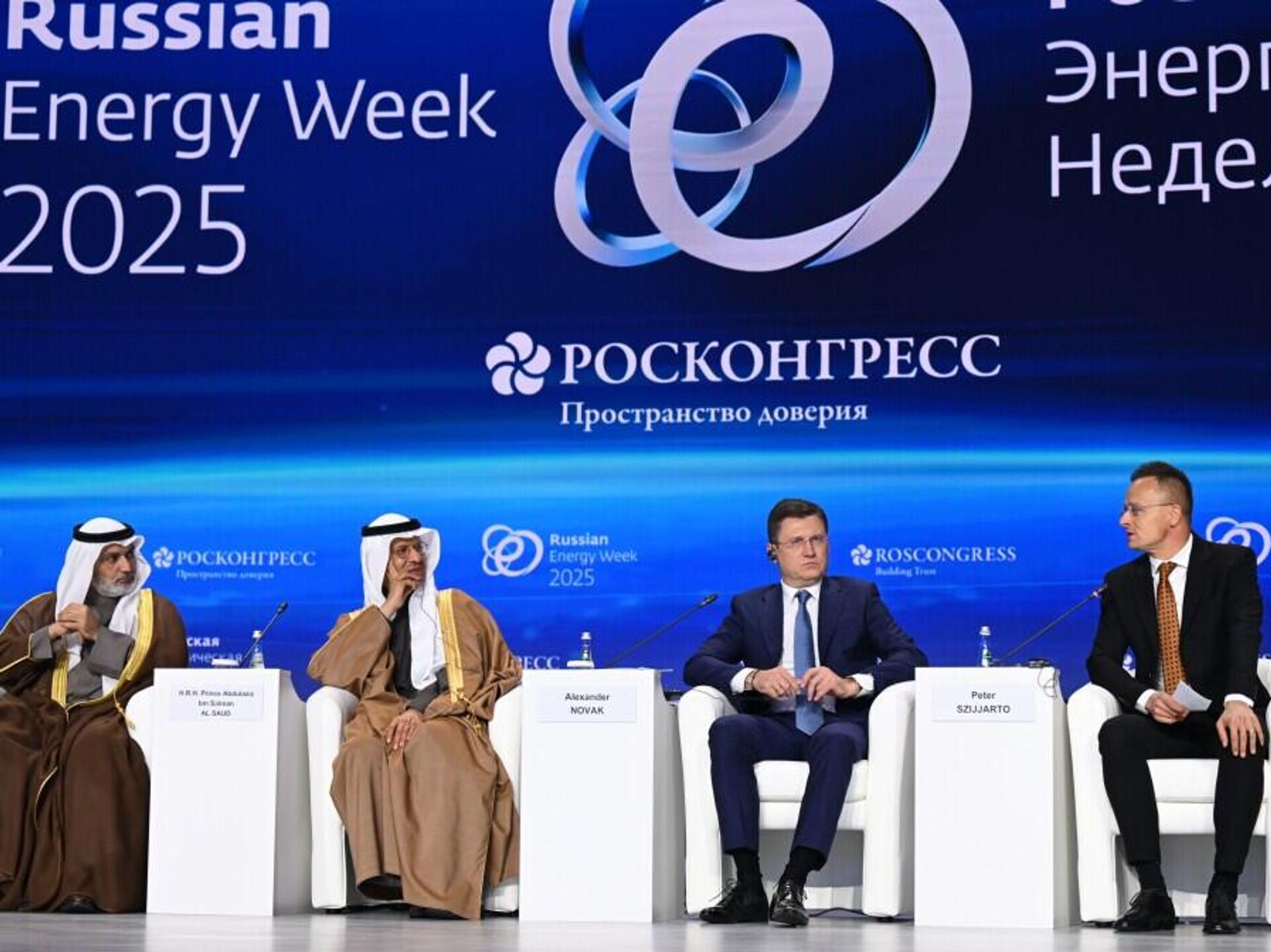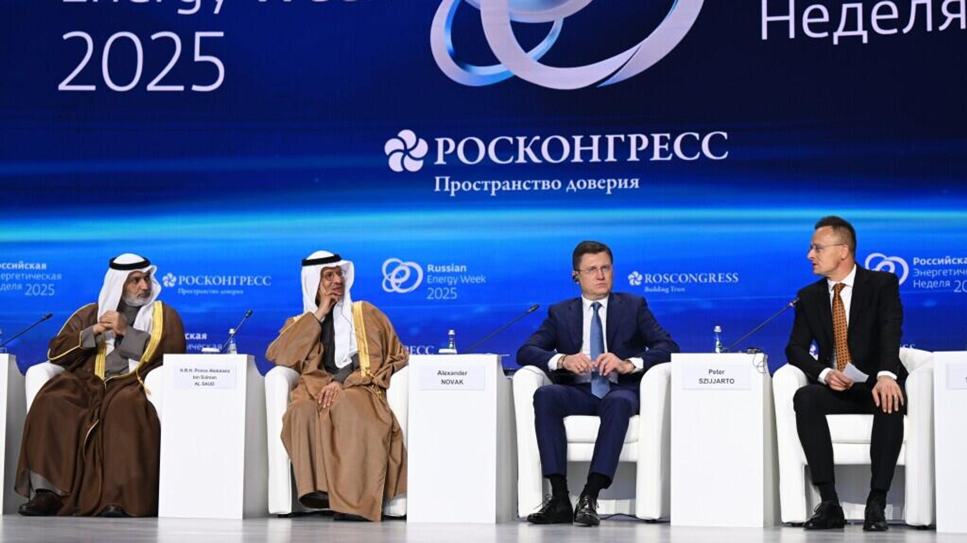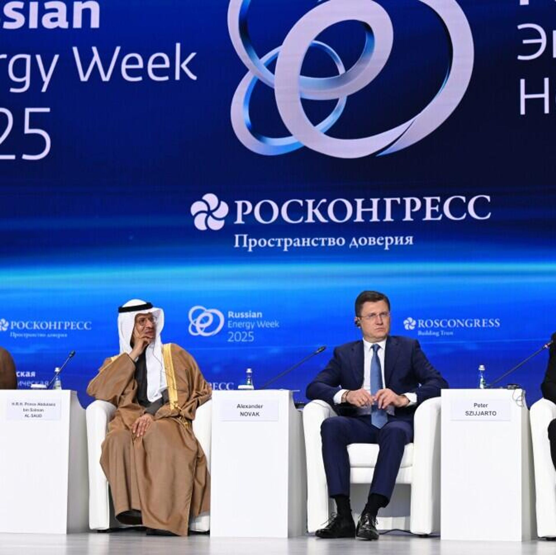 沙特能源大臣阿卜杜勒阿齊茲·本·薩勒曼親王在莫斯科舉行的“俄羅斯能源周”論壇上強調,實現和平與結束衝突對全球能源市場穩定至關重要。 2025年10月15日, 俄羅斯衛星通訊社