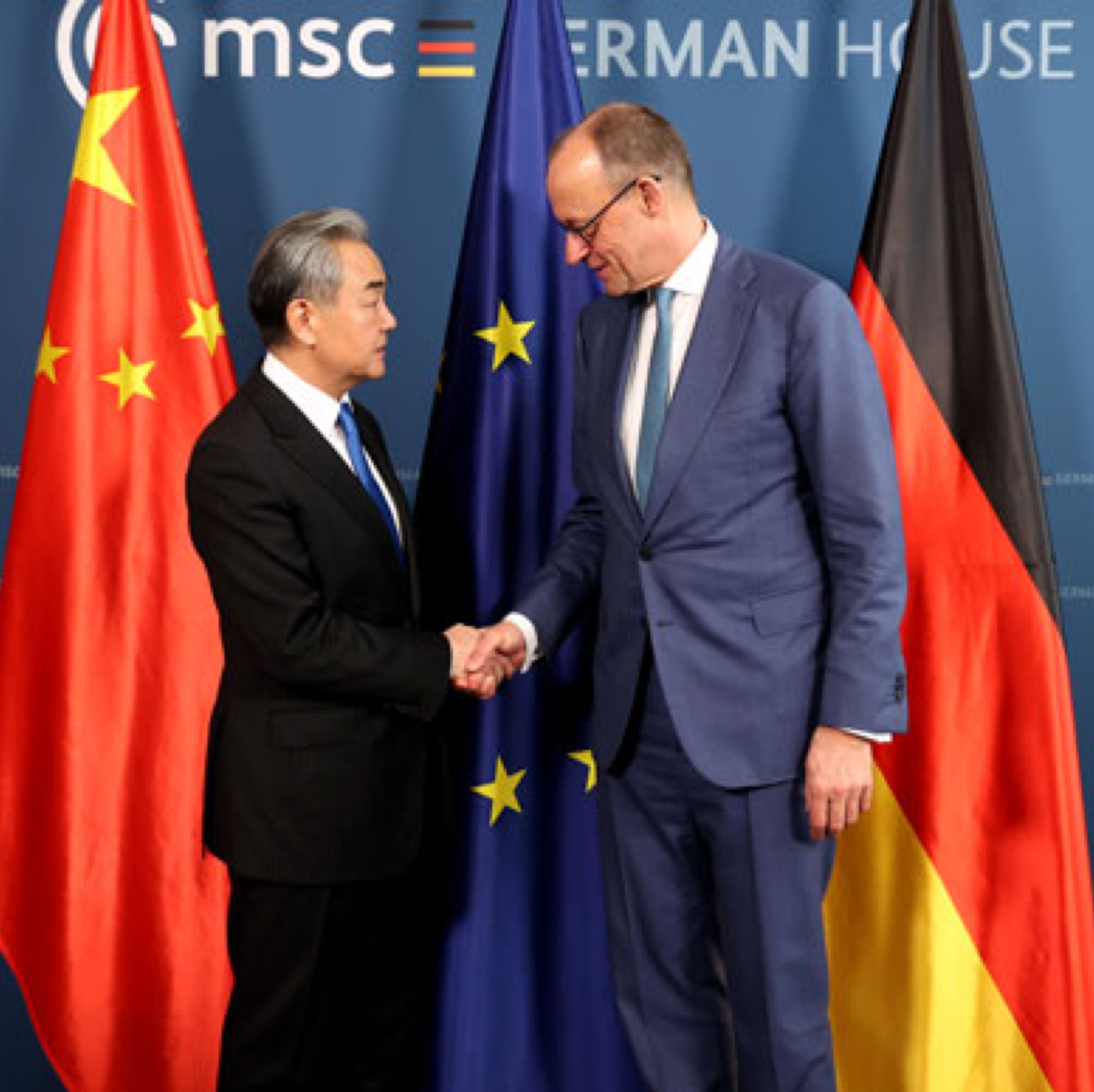 王毅首先轉達中國領導人對默茨的親切問候。王毅說,總理先生昨天在慕尼黑安全會議開幕式上的講話,體現了德國和歐洲期待戰略自主、自立自強。中方支持德國為此發揮更大作用。中國在國際舞台上提出的一切倡議,採取的一切行動,都是為維護以聯合國為核心的國際體系。儘管聯合國的權威和地位受到削弱,但其重要地位仍不可替代。習近平主席提出全球治理倡議,就是為了重振聯合國,構建更加公正合理的全球治理體系。在此大背景下,中德應展現大國擔當,為促進世界和平與發展作出新的貢獻,也期待德國成為中歐務實合作的推進器、中歐戰略關係的穩定錨。默茨請王毅轉達對中國領導人的誠摯問候。默茨表示,中國取得舉世矚目的輝煌發展成就,已成為世界性強國,在國際上發揮著舉足輕重的作用。德方致力於維護基於規則的國際秩序,維護世界貿易組織地位和作用,這同中方關於全球治理的理念是一致的。德中共同堅持和踐行這些理念,有益於兩國,也利於世界。